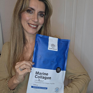 "El colágeno marino en polvo HealthyWorld me ha encantado; ahora lo incluyo con gusto en mi rutina diaria."