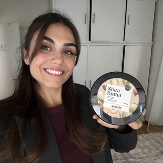 "¡Me encanta la manteca de karité! Después de usarla a diario, mi piel está suave y mi cabello brillante y fácil de peinar."